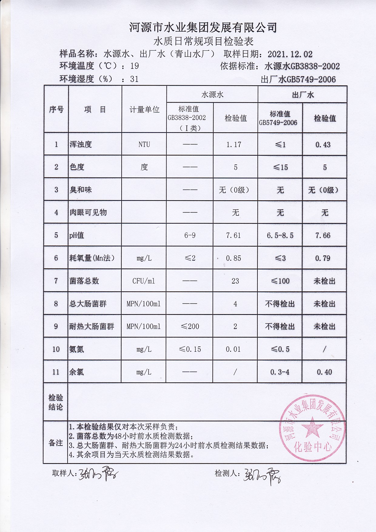 2021年12月2日水質(zhì)檢驗(yàn)報(bào)告 ????